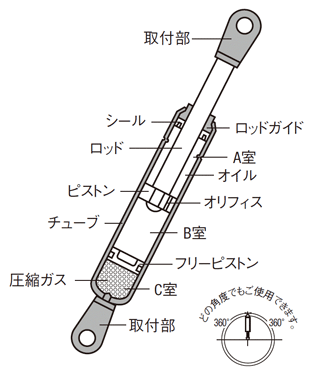 ガススプリング 取付方向自在タイプ GSKSFタイプ
