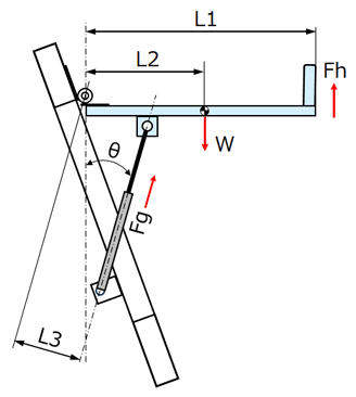 2.選定するガススプリングの反力は、Fg×1.1以上にしてください。