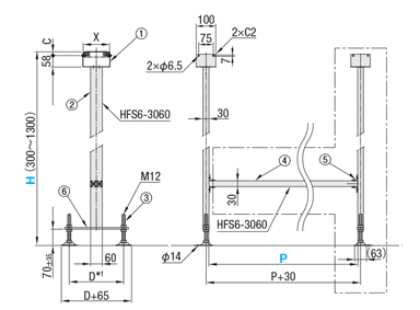 | コンベヤにコンベヤ用スタンドを追加します。 〈指定方法〉: NA1-H750-PN WA3-H1200-P400 [ ! ]コンベヤ本体の溝サイズに合わせたボルト・ナットが付属します。 [ ! ]プーリ間機長L寸≧1000(GVシリーズはL寸≧1400)の場合、2本以上のスタンド取付を推奨しております。 [ ! ]コンベヤ用スタンド1台に図面一点鎖線部が(□-1)台追加された仕様です。 [ ! ]納期はコンベヤの標準納期と同一