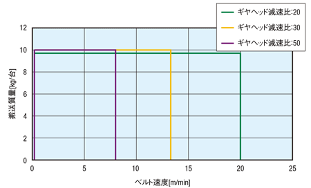 | ギヤヘッド減速比 | ベルト速度【m/min】 | |