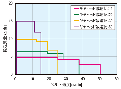 | ギヤヘッド減速比 | ベルト速度【m/min】 | |