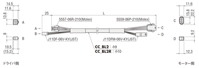 | モータ | コントローラ型式 | モータ+ギヤヘッド型式 | 接続ケーブル | 電源ケーブル | |||