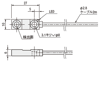 | 寸法 | センササイズ | 27mm × 12mm × 6.5mm | 27mm × 10mm × 6mm | 30mm × 18mm × 10mm |