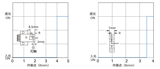 | 応答時間 | 入光時:20μs以下、遮光時:80μs以下 | 入光時:20μs以下、遮光時:80μs以下 | |