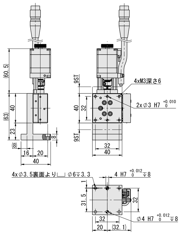 | 送りねじ | ボールねじΦ6、リード1mm | |