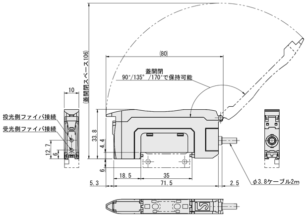 ファイバーセンサ用のアンプになります。先端部品と組み合わせてご選定ください。