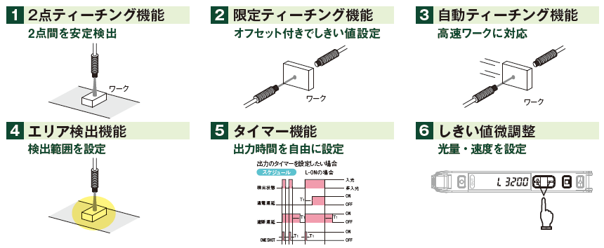 | 出力モード | L.on(入光動作)/D.on(遮光動作)を設定できます | |