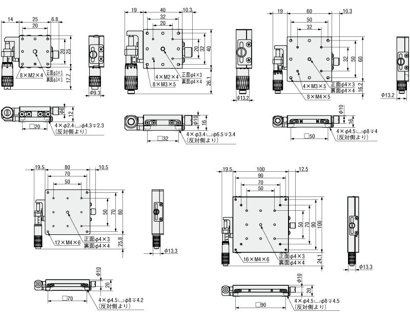 【高精度】X軸 アリ溝 送りねじ式 正方形