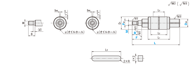 | Dh8 | D1 | L1 | L2 | L3 | bH8 | R | t | u | 基本定格トルク | 基本定格荷重 | 静的許容モーメント | 質量 | |||||