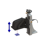 ストロークはレーザーマーカー取付用アタッチメントから片持ち取手を取外した状態で、テーブルが移動可能な距離です。片持ち取手を取付けた状態で使用される場合、ハンドル種類や指定されたハンドル方向によりストローク量が減少する場合がございます。