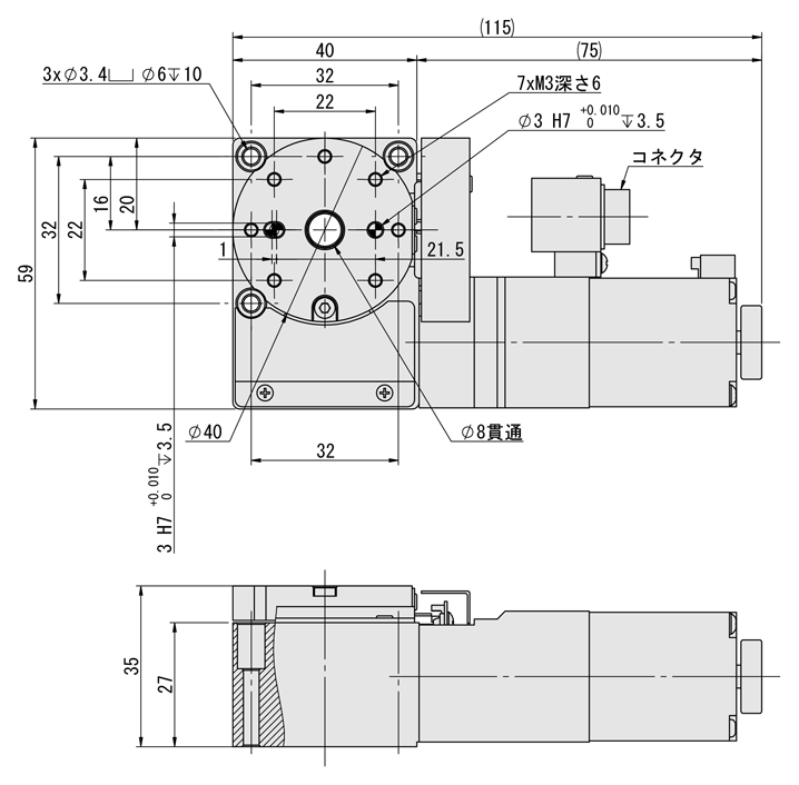 | E-RMBG | 40 | A (1軸パルスドライバ) | 2 | φ40 | ±12.3 | 39.2 | 0.5 | 28 | ±0.01°以内 | 50以内 | 98,770 |