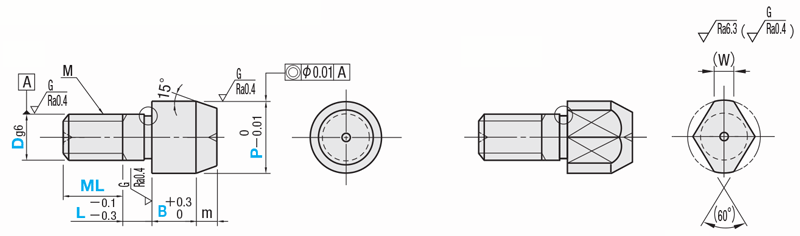 | SC | 2面幅を追加![]() | m寸法を変更します。1mm単位指定 [ ! ]P-3≦SC≦P-1,SC≧D [ ! ]B≦11の場合、先端部に2面幅加工がつきます [ NG ]ダイヤ形状は適用不可 | SL-SFPNA10-P15.01-L12-B6.4-SC13 | 500 | |||||||||||||||||