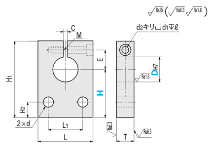 | 型式 | H 選択 | L | H1 | H2 | T | L1 | E | d | 締付ボルト M | d2 | d1 | ℓ | C | ¥基準単価 | ||||||||||||