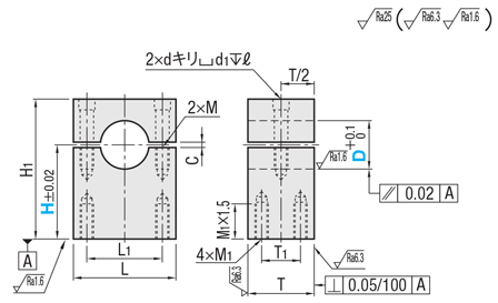 | 型式 | H | L | H1 | T | T1 | L1 | 締付ボルト M | M1 | d | d1 | ℓ | C | ¥基準単価 | |||||||||