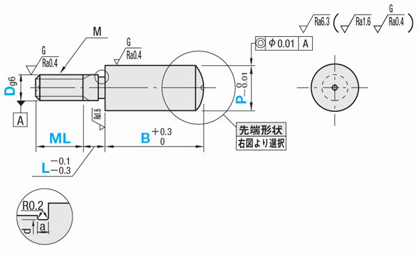 位置決めピン 先端形状選択タイプ -おねじ-