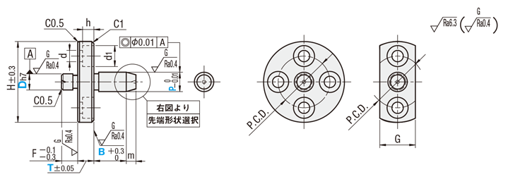 位置決めピン 先端形状選択タイプ -めねじ(大頭/ストレート)-