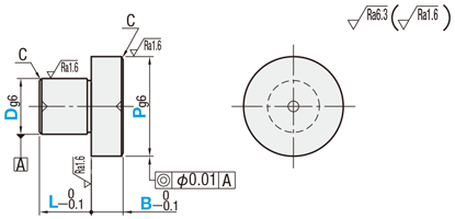| NTP | 抜きタップ加工を追加![]() | P寸部に抜きタップを追加します。 [ ! ]D≧6.0の場合に適用 [ ! ]L+B≦M×5の場合は、下穴が貫通することがあります。