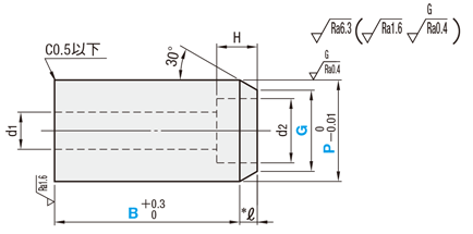 | 型式 | P 指定0.01mm単位 | B 指定0.1mm単位 | G 指定1mm単位 | d1 | d2 | H | 適用 ボルト | |