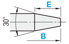 | 型式 | L 指定0.1mm単位 | P 指定0.01mm単位 | B 指定0.1mm単位 | H 指定0.01mm単位 | T 指定0.1mm単位 | E 指定0.5mm単位 (テーパ形状のみ) | R | M 並目 | ||||||