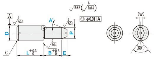 | RC | 首元R加工を追加![]() | 首元の逃げをR0.5に変更します。 [ ! ]D-P≧2の場合に適用 | KFSAGS10-P8.00-L10-B8.0-E3.0-A30-RC | 300 | ||||||