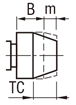 | TC | 先端テーパ部長さを変更![]() | m寸法を変更します。指定1mm単位 [!]B+m≧TC+2(ストレート部min.2mm) [!]P/2-TC×tan15°(≒0.27)>0.5(先端φ1.0min.) [!]TCの指定により、B寸法が変わります。(変更後B寸法=B+m-TC)