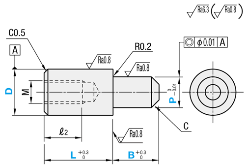 | CN | C面取りサイズを変更![]() | P寸部C面取りをC0.5以下に変更します [ ! ]D≧6 [ NG ]D寸部には適用しません | SL-ADSTC8-P6.50-L14-B8.0-CN | 無料 | |||||||||||||||||||||||