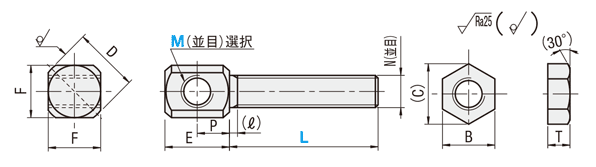| 型式 | L選択 | M×Pitch (並目) | N (並目) | E | P | D | F | (ℓ) | B | T | (C) | |||||||