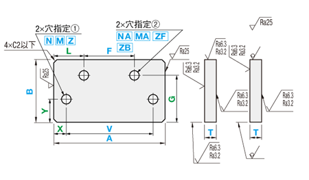 | 型式 | - | A | - | B | - | T | - | X | - | V | - | Y | - | 穴指定① | - | L | - | F | - | G | - | 穴指定② | ||