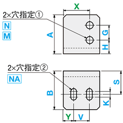 | T | N・NA(ボルト通し穴) | M・MA(タップ穴) |