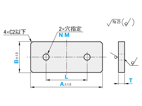 | T | N(ボルト通し穴) | M(タップ穴) |