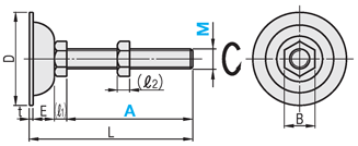 | 型式 | L | D | (ℓ1) | (ℓ2) | E | B | t | M | ねじ ピッチ | 垂直耐荷重(kN) | 質量 | ¥基準単価 | |