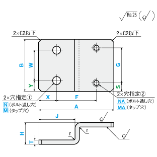| T | N・NA(ボルト通し穴) | M・MA(タップ穴) |