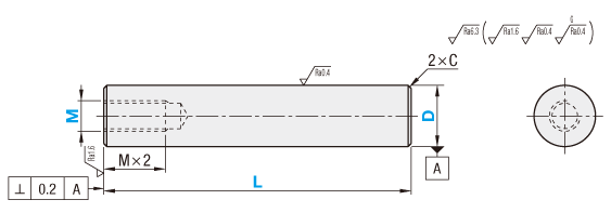 シャフト 片端おねじ逃げ溝 キリ穴付きタイプ・スパナ溝付きタイプ