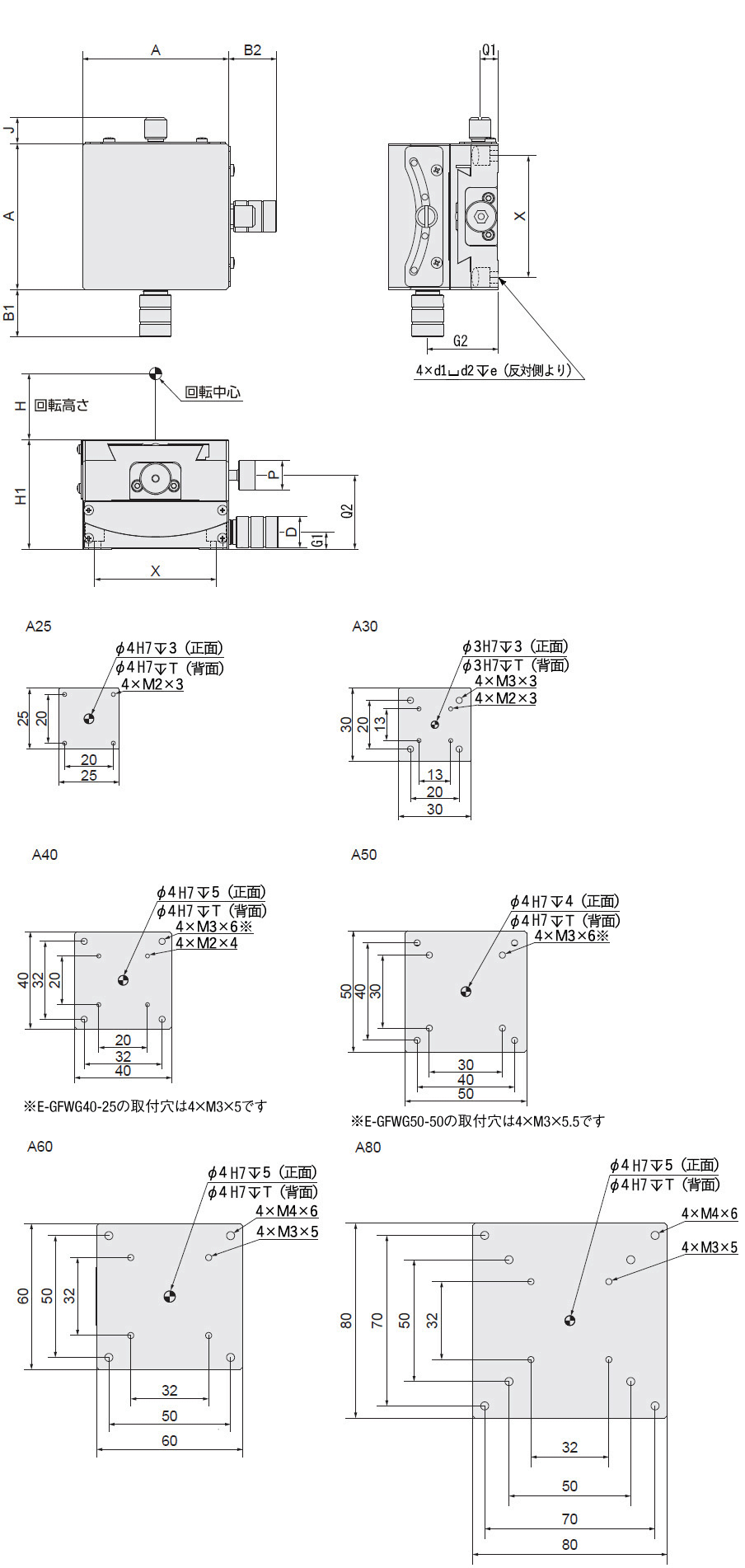 | TYPE | A-H | B1 | B2 | J | G1 | Q2 | H1 | D | P | e | d1 | d2 | X | G2 | Q1 | ピッチング | ヨーイング | ローリング | |||||||
