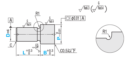 | 型式 | P 指定0.01mm単位 | L 指定1mm単位 | B 指定0.1mm単位 | C | ||
