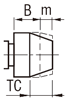 | TC | 先端テーパ部長さを変更![]() | m寸法を変更します。指定1mm単位 [ ! ]B+m≧TC+2(ストレート部min.2mm) [ ! ]P/2-TC×tan15°(≒0.27)>0.5(先端φ1.0min.) [ ! ]TCの指定により、B寸法が変わります。(変更後B寸法=B+m-TC)