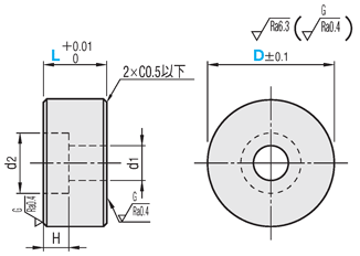 | 型式 | L 指定0.01mm単位 | D | d1 | d2 | H | 適用 ボルト | ¥基準単価 | |||||||