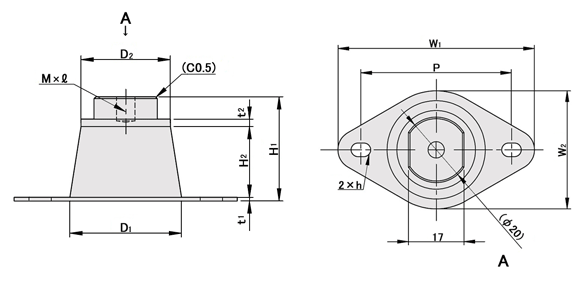 防振ゴム -めねじXおねじ止めタイプ/めねじXプレート止めタイプ-