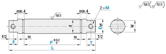 | DC | 両端2面取り追加![]() | 面取り部の径を指定できます。 DC=0.1mm単位指定 [ ! ]DC≦Wの場合、Wの面取りが なくなります。 [ NG ]φ10以下は不可