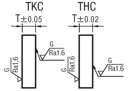 (例)~-CC10 | 板厚(T寸)の公差を変更します。 TKC:公差±0.05 THC:公差±0.02 [ ! ]材質記号SCMのみ適用 [ NG ]TKC・THCは同時指定不可