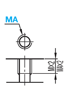 | 加工 仕様 | タップ有効長 最大MA×2 [ ! ]T≧MA×3のとき、 タップ下穴が貫通しない 場合があります。 |