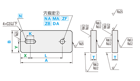 | タイプ | 型式 | 0.1mm単位 | B | T | X | Y | 穴指定① | K | L | 穴指定② | |||||