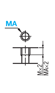 | 加工 仕様 | タップ有効長最大 MA×2 [ ! ]T≧MA×3のとき、 タップ下穴が貫通しない 場合があります。 |