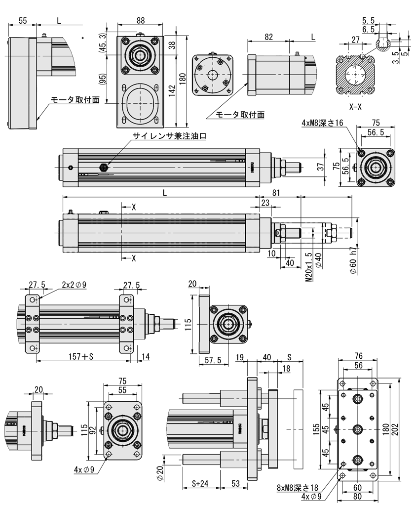 | 有効ストロークS | 50 | 100 | 150 | 200 | 250 | 300 | 350 | 400 | 450 | 500 | 550 | 600 | 650 | 700 | 750 | 800 | |