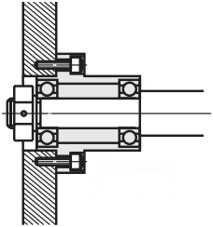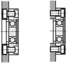 | 止め輪付きベアリングハウジングの止め輪は、軸方向に締め付けることはできず、ベアリングの脱落防止のみの役割です。 ベアリングを軸方向に固定する必要がある場合は、固定リングやナットなどの使用を推奨します。 また、軸方向固定用の固定リングやナットなどを選定する際は、止め輪を避けてください。 止め輪の寸法は製品仕様をご参照ください。 | ![]() |