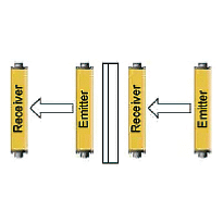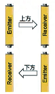 | 投光器を向かい合わせ、 前後に配置 | 投光器を向かい合わせ、 上下に配置 | 投光器を 背中合わせにして配置 | 投光器が同じ方向にある場合は 向かい合わせ、上下に配置 |
