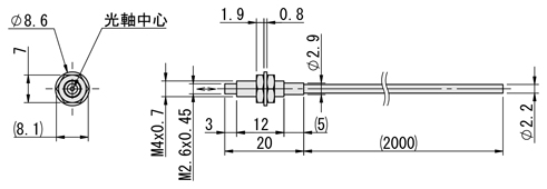 | E-MSMC31M | 反射型 | ○ E-MSMF3A (先端外径:φ4.0) E-MSMF3B (先端外径:φ7.4) | M3×P0.5 | 2×φ1.0 | 2×φ0.5 | R15 | 平行型 | 30 | 50 | 120 | 1,300 | |