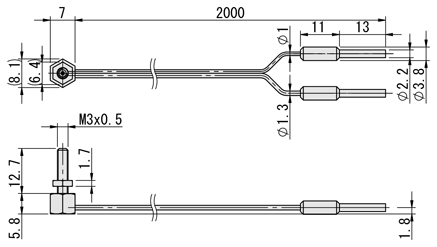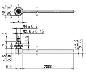 | E-MSMT11R | 透過型 | × | M4×P0.7 | 2×φ2.2 | 1×φ1.0 | R25 | 2m | 平行型 | 300 | 600 | 900 | 1,320 |