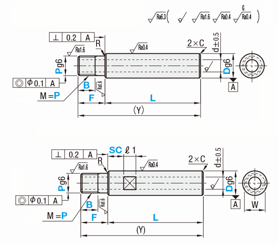 | 型式 | 指定1mm単位 | P(並目) 選択 | D公差 | d | (Y) Max. | R | C | |||||