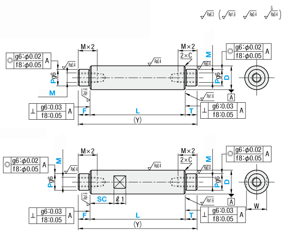 | 外径公差 | g6/h5 | f8 | g6/h9/h7 | g6 | ||||||